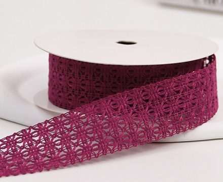 Лента декоративная “Ажурное плетение”, полиэстер, 25 мм х 13 ярд., винный