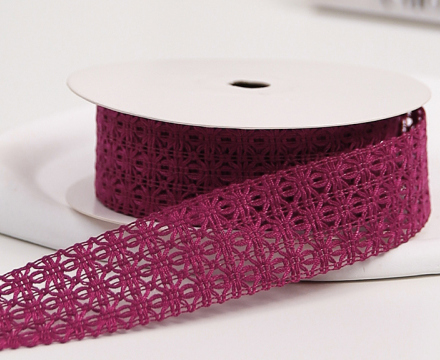 / Лента декоративная “Ажурное плетение”, полиэстер, 25 мм х 13 ярд., винный
