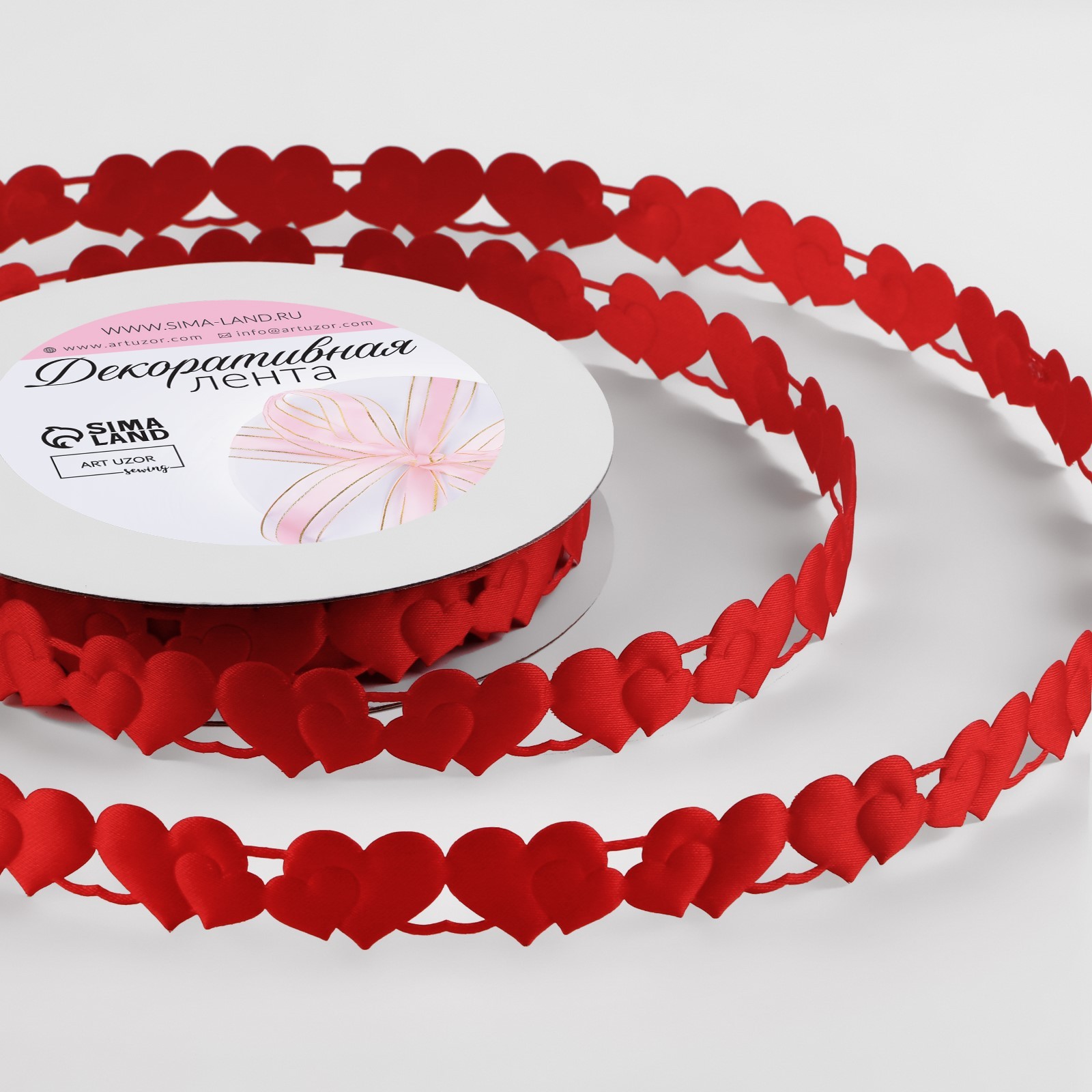 Количество товара Лента фигурная «Сердца», 15 мм, 9 ± 0,5 м, цвет красный