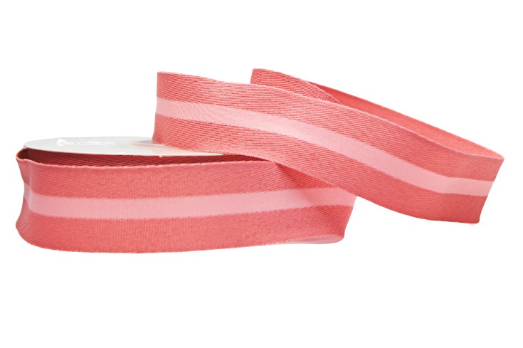 Лента хлопковая “Полоса” 25мм*25ярд, розовый с белым