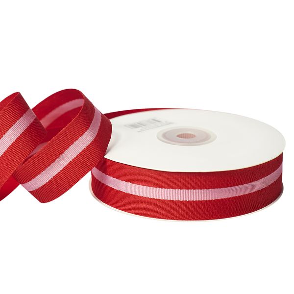 / Лента хлопковая “Полоса”, 25mmx25yards, цв. красный с розовым