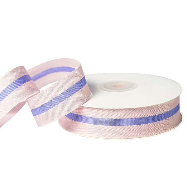 Лента хлопковая “Полоса”, 25mmx25yards, цв. светло-розовый с сиреневым