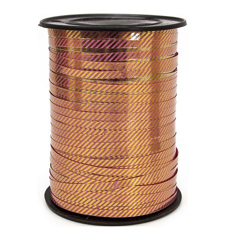 Лента на бобине с золотой полосой 0,5см*250ярд., диагональ золото БРУСНИЧНЫЙ А0529