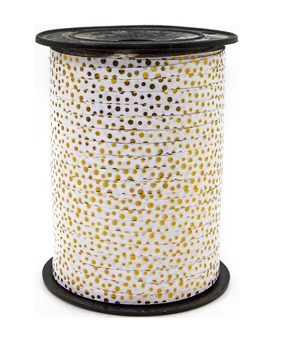 Лента на бобине с золотой полосой 0,5см*250ярд., горошек золото БЕЛЫЙ А0551