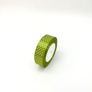 Лента атлас рисунком “Горох” 2,5см*25ярд., оливковый с белым