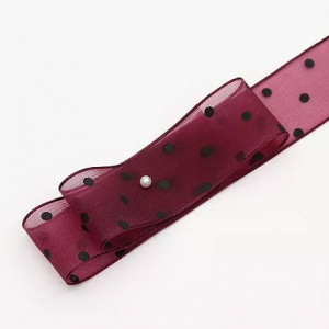 Лента “ГОРОШЕК” полиэстр 25мм*30ярд, винный/черный
