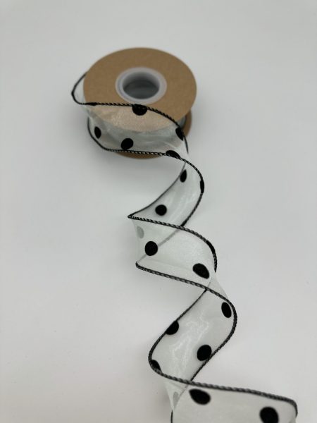 Лента органза, ГОРОШИНЫ, 4cmx10yards, цв.св.зеленый/черный