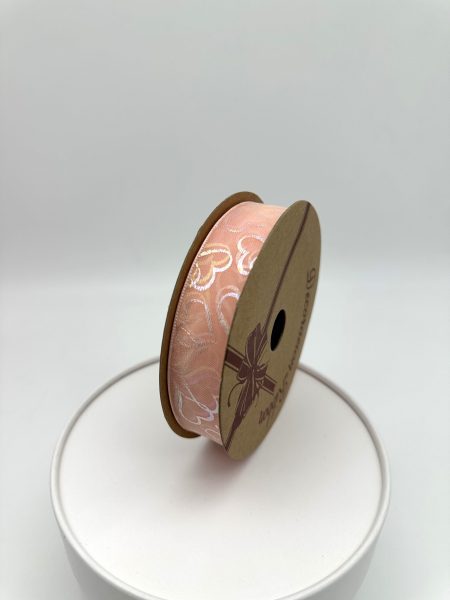 Лента органза “Перламутровые сердца” 25mm*10 ярд персиковый