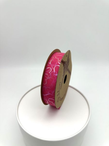 / Лента органза “Перламутровые сердца” 25mm*10 ярд ярко-розовый