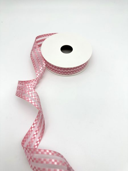 Лента органза с атласными вставками, 2,5cmx18yards, цв.розовый