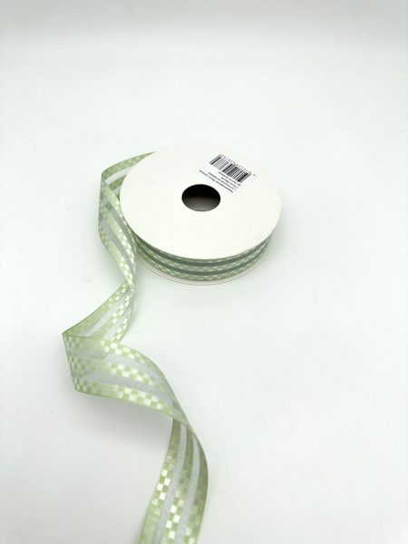 Лента органза с атласными вставками, 2,5cmx18yards, цв.светло-зеленый