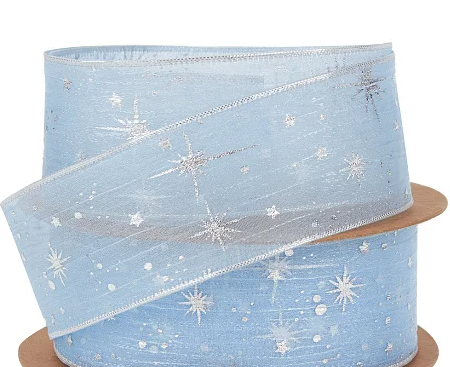 / Лента органза “Звезды”, 40 ммx10 ярд, голубой
