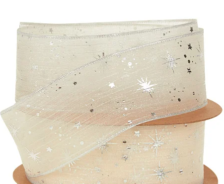 / Лента органза “Звезды”, 40 ммx10 ярд, кремовый