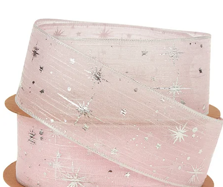 / Лента органза “Звезды”, 40 ммx10 ярд, розовый