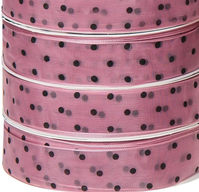 / Лента “ГОРОШЕК” полиэстр 25мм*30ярд, чайная роза/черный
