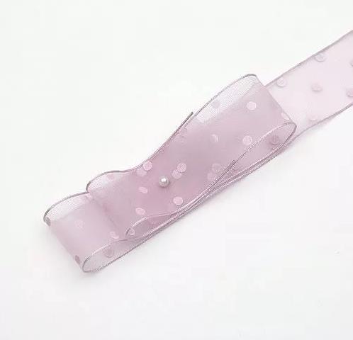 / Лента “ГОРОШЕК” полиэстр 25мм*30ярд, сиреневый/белый