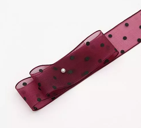 Лента “ГОРОШЕК” полиэстр 25мм*30ярд, винный/черный
