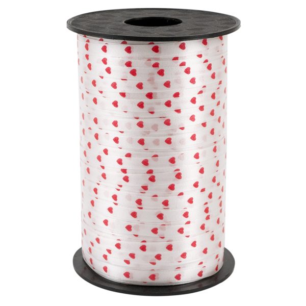 Лента полипропиленовая (0,5 см*250 м) Красные сердца на белом, 1 шт.