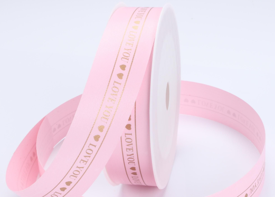/ Лента полипропиленовая “Love you”, 3 см х 50 ярд., розовый