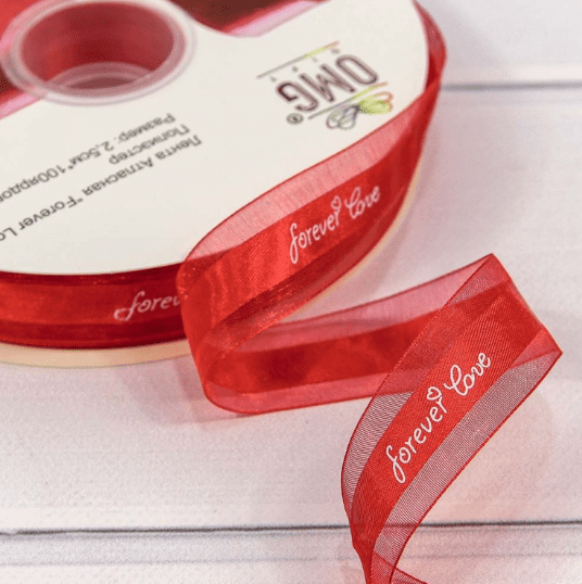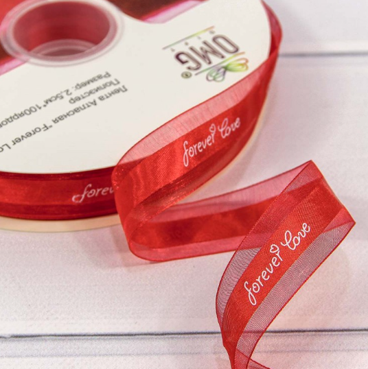 Лента Органза 2,5см*100ярд “Forever love” Красный 1/13 1/52