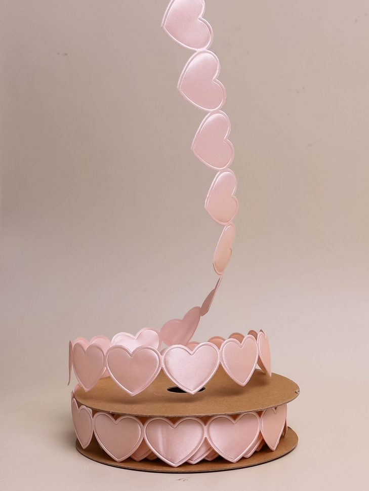 / Лента сердечки 25мм х 10 ярд персиковый