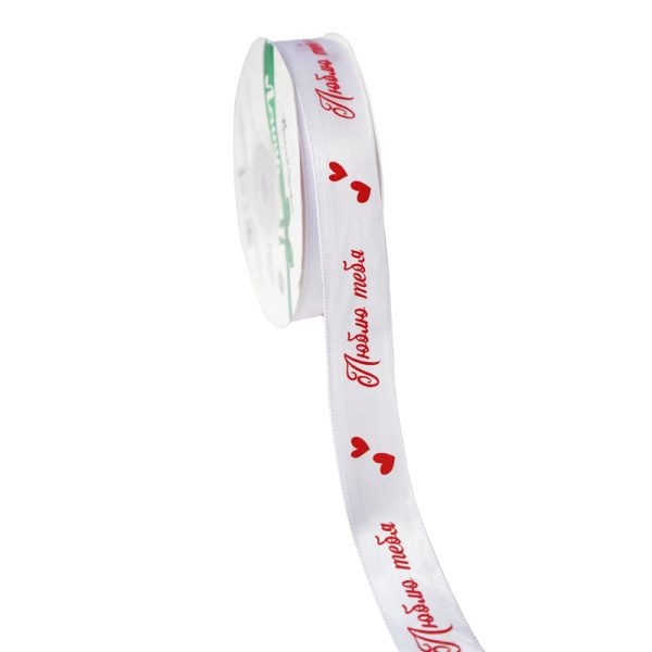 Лента Атлас “Люблю тебя” Белый / 20 мм * 22,85 м