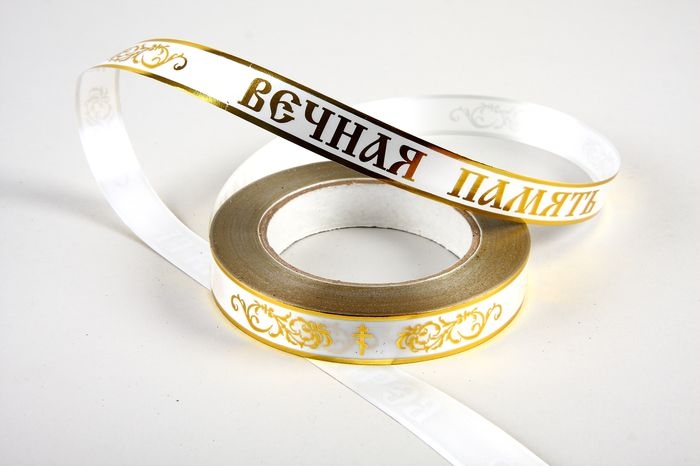 Количество товара Лента золотая полоса траур 2/50 РД глянцевая белая