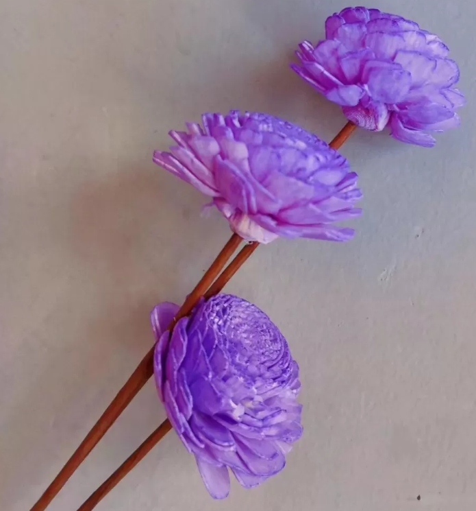 / “Деревянный цветок мини Сола” ручной работы, длина 40-50 см, раз.цветка: 4 см, 3 шт/упак., фиолет
