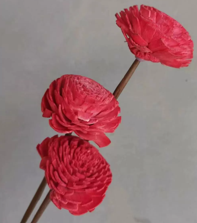 / “Деревянный цветок мини Сола” ручной работы, длина 40-50 см, раз.цветка: 4 см, 3 шт/упак., красный