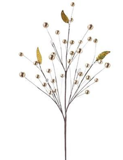 Ветка декоративная с бусинами и листиками, 60 см, 1 шт., золотой