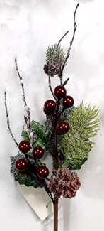 Ветка декоративная с ягодами и шишкой , 30 см