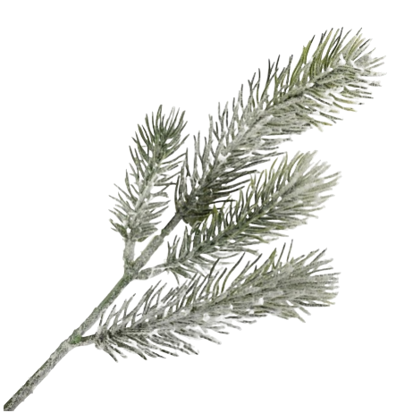 Ветка еловая заснеженная искусственная (пластик), 26 см, зеленый