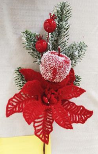 Ветка с красным цветком и заснеженным яблоком и ягодами, 32 см