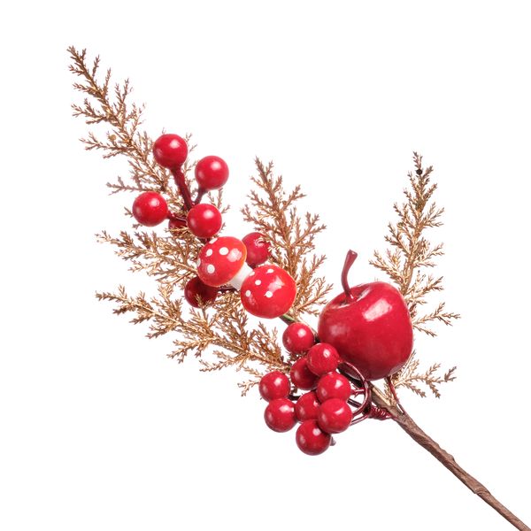 Количество товара Ветка золотая с красными ягодами, грибочками, 30см