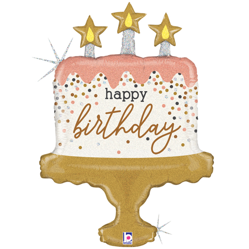 / G 33 Торт со свечами и конфетти. Розовый. СДР / Birthday Cake Confetti / 1 шт /, Фольгированный шар
