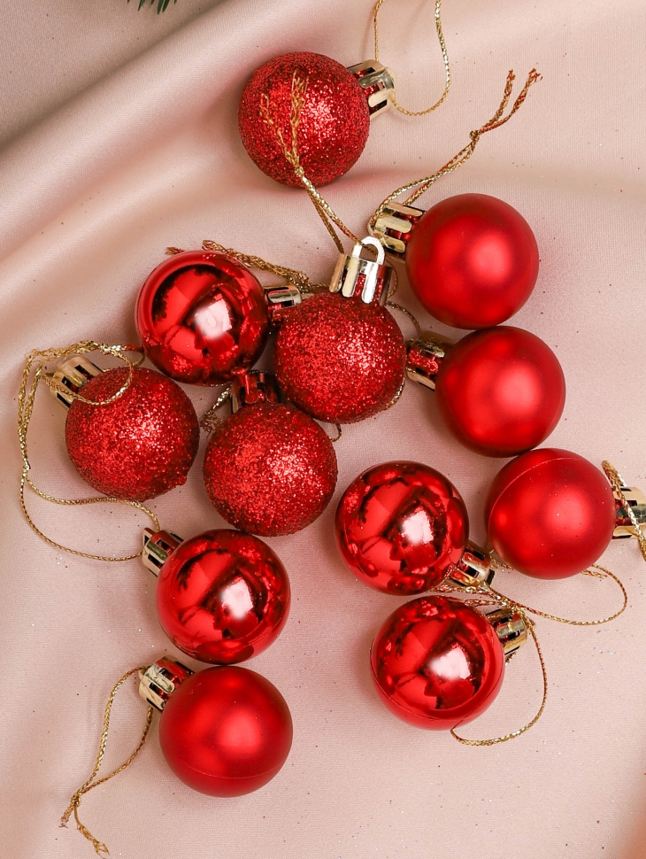 / Игрушка елочная Шар d3см набор 12шт пластик красный