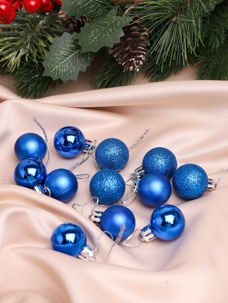 / Игрушка елочная Шар d3см набор 12шт пластик синий