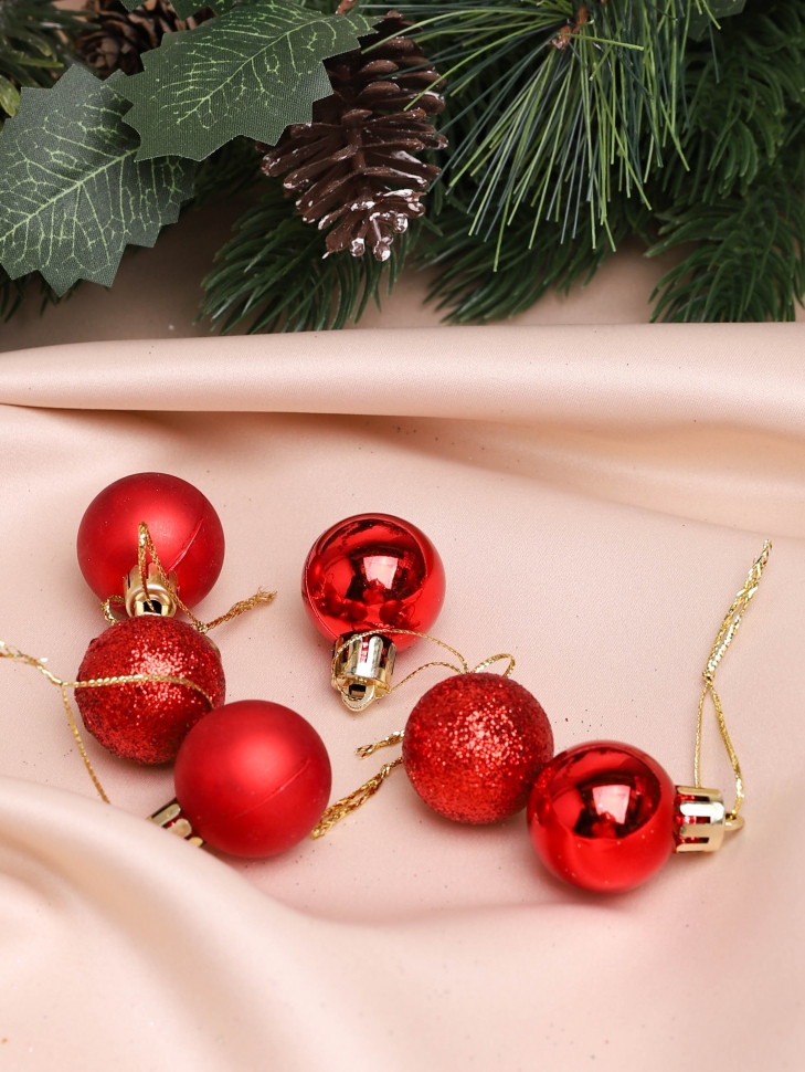 Игрушка елочная Шар d3см набор 6шт пластик красный