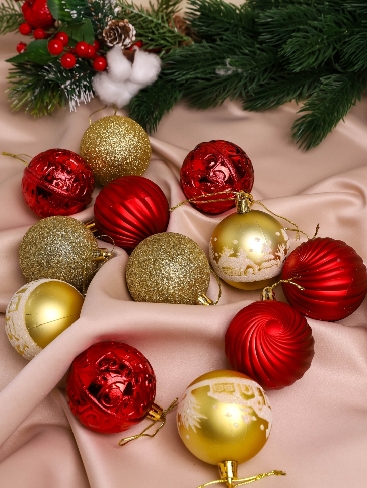 Игрушка елочная Шар d6см набор 12шт Новогоднее ассорти красный/золото