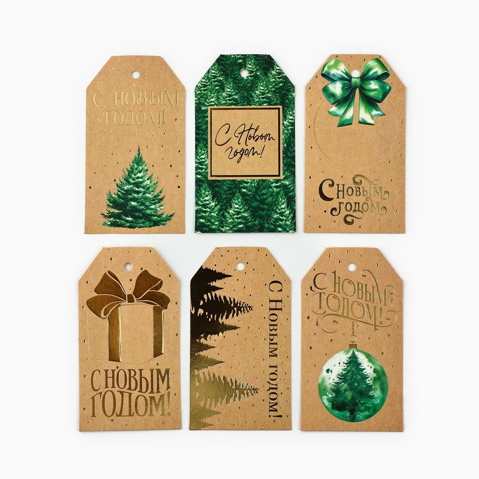 Количество товара Шильдик декоративный в наборе «С Новым годом», крафт, 5 х 9 см, Новый год