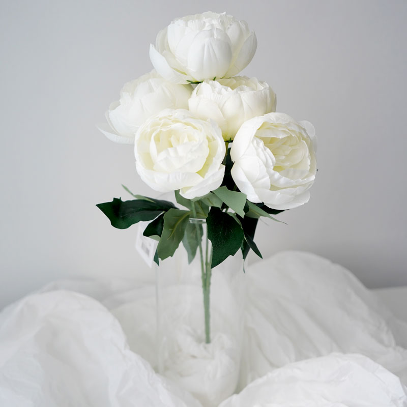 Пионы искусственные, 5 бутонов, Белый, 42 см / 1 шт / (Китай)