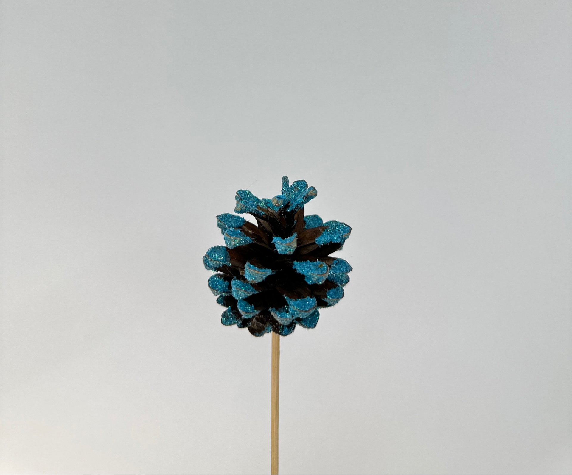 Шишка сосновая на вставке с глиттером, крупная 5*40см, 1шт/уп, бирюза