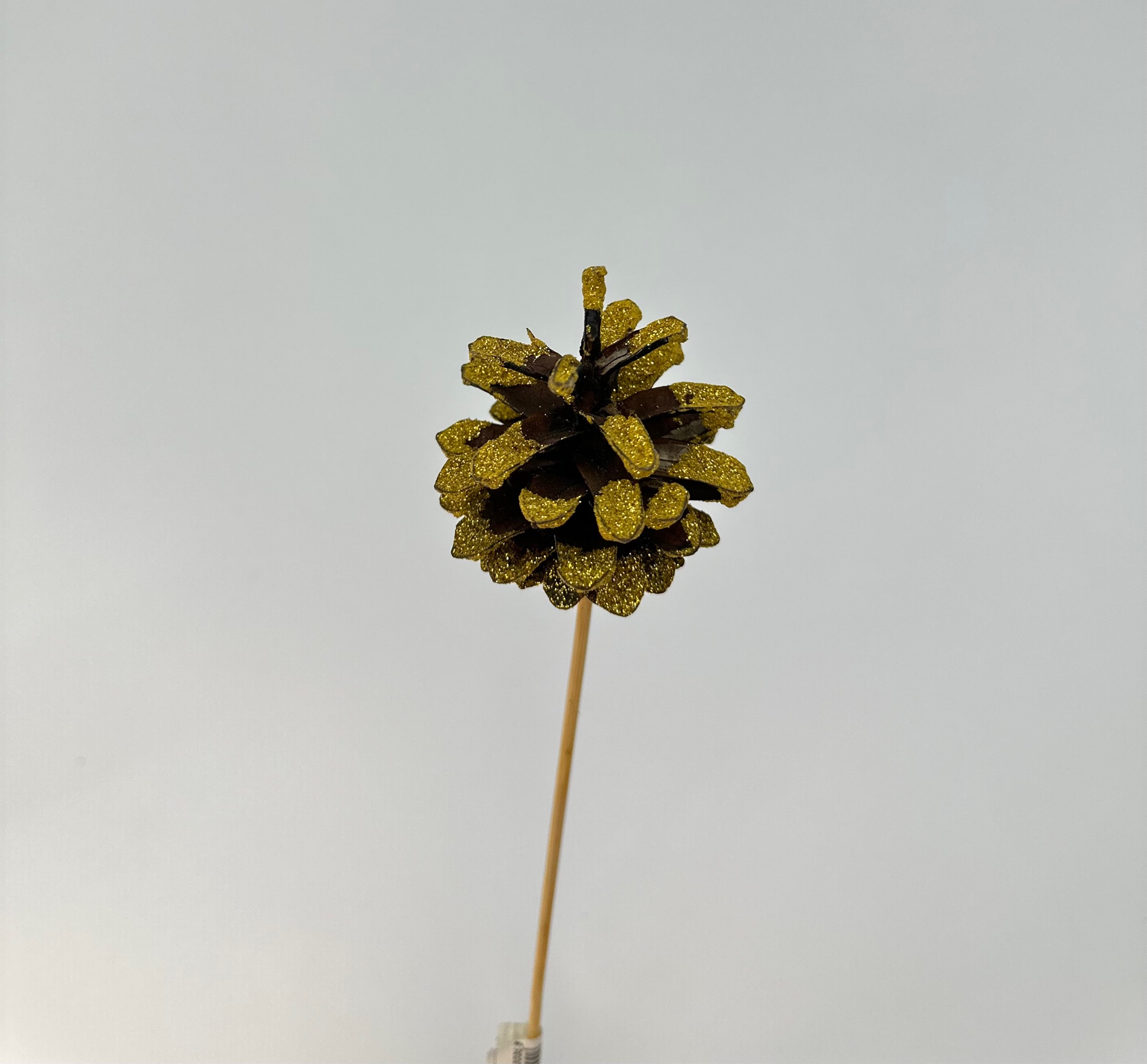 / Шишка сосновая на вставке с глиттером, крупная 5*40см, 1шт/уп, золото