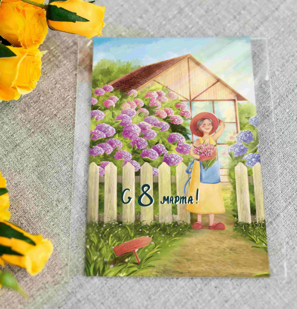 / Дизайнерская открытка “С 8 марта!” (цветочный сад) Ar68 (цена за 5 штук)