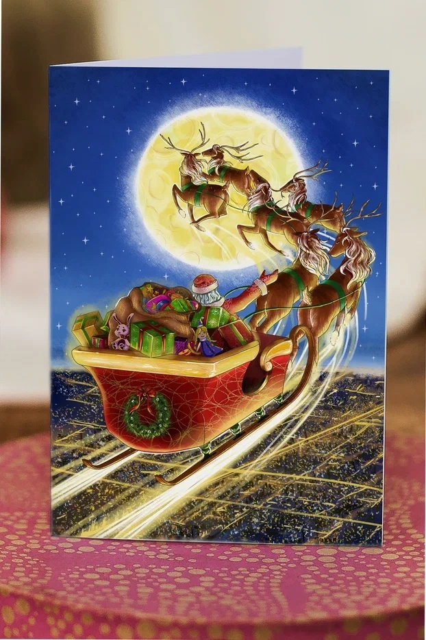 Дизайнерская открытка “Сани Деда Мороза” Ar47 Лен (цена за 5 штук)