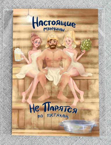 / Дизайнерская открытка “Настоящие мужчины не парятся по пустякам” Ar65 (цена за 5 штук)