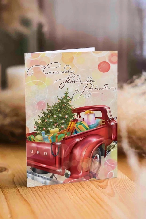 / Дизайнерская открытка “Рождественский пикап” Ar92 Лен (цена за 5 штук)
