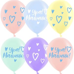 Шар12″ Макарунс ассорти с рис. Ура, Мальчик (25 шт/уп) /К