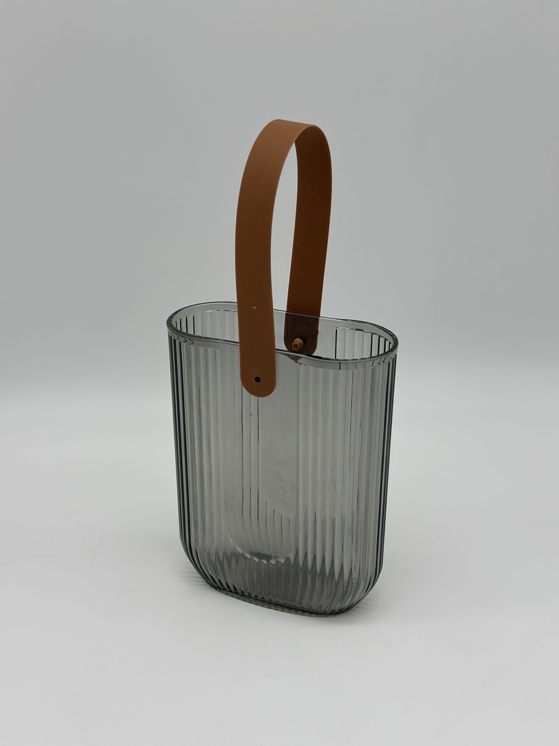 / Акриловая ваза для цветов, плоская с пластиковой ручкой, ширина 12,5cm, высота 16cm, цв. Черный