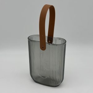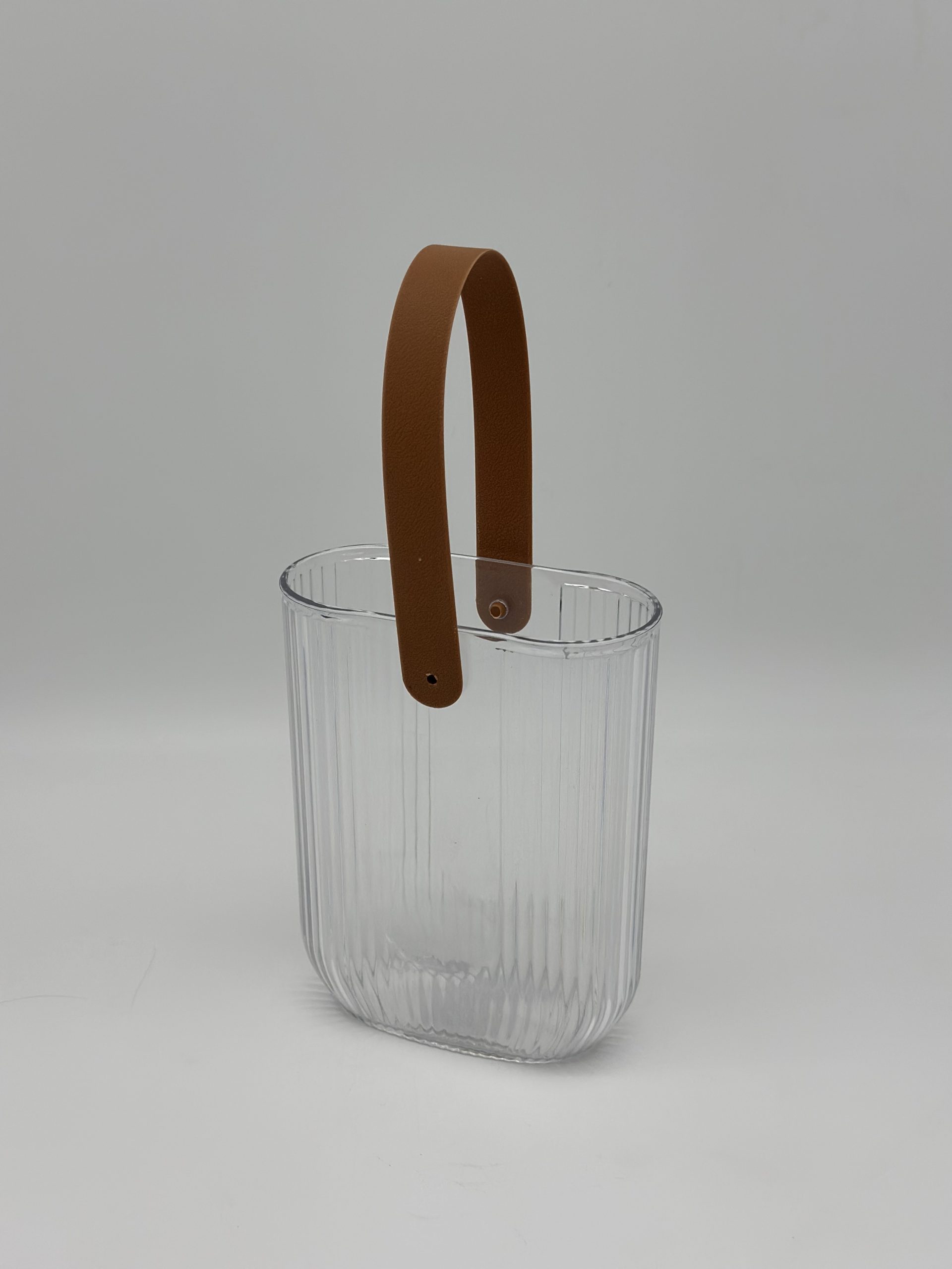 / Акриловая ваза для цветов, плоская с пластиковой ручкой, ширина 12,5cm, высота 16cm, цв. Прозрачный